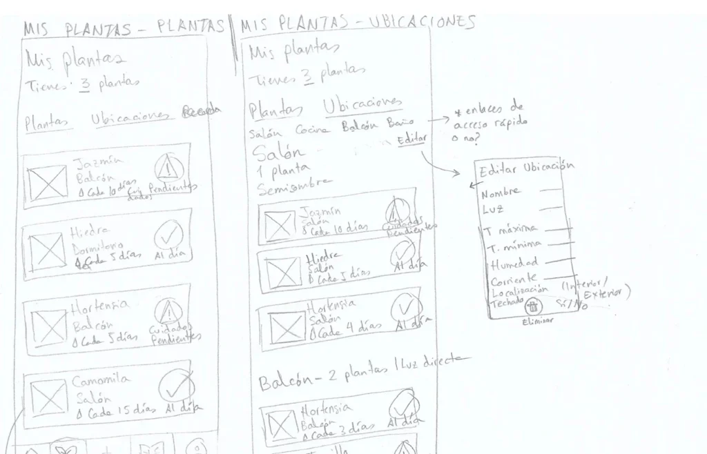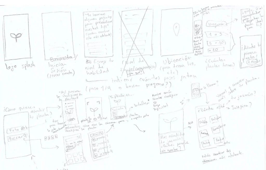 It is in these drafts where I visually capture my hypotheses, and I can get a more visual idea of how the different screens or areas of the app work and communicate. With this first sketch in front of me, I have a first approach to which elements might work well and which might not, and I can pivot in a very agile way and make corrections on the spot.