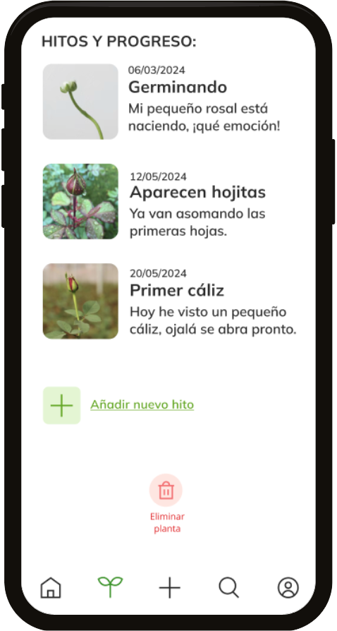 You can also add milestones to the plant (a photo with title, date and a short description) to record its progress.