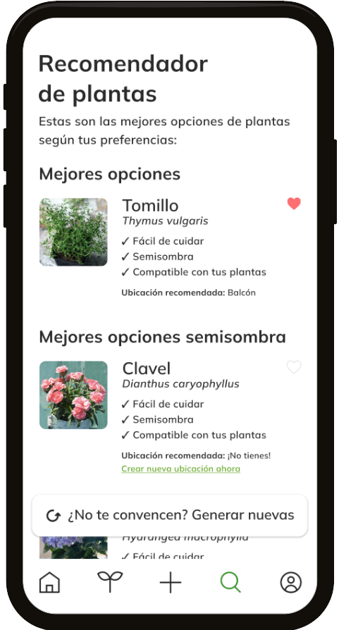 In addition, it takes into account the preferences stipulated by the user, such as their level of skill with plants, compatibility with the plants they already own or the presence of children and pets in the home, so as not to show recommendations for plants that are unsuitable for these situations.