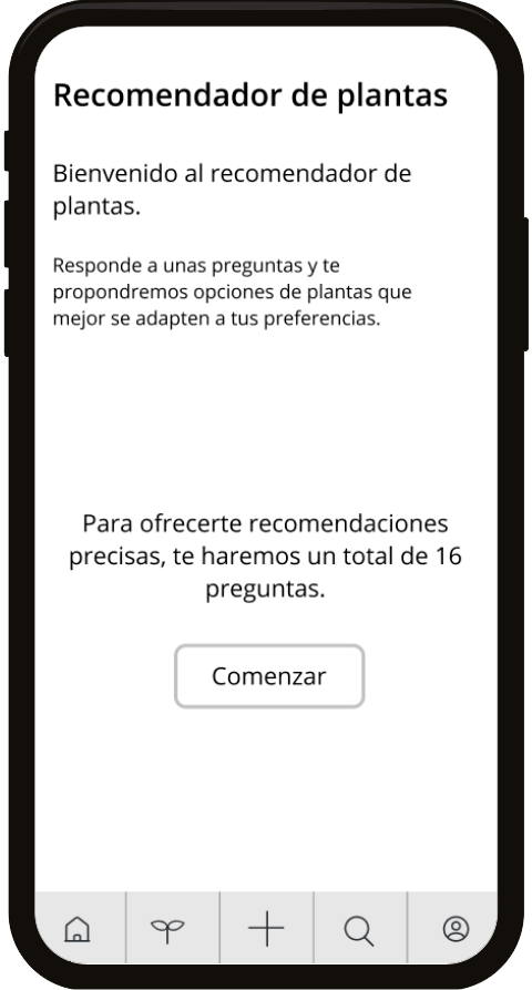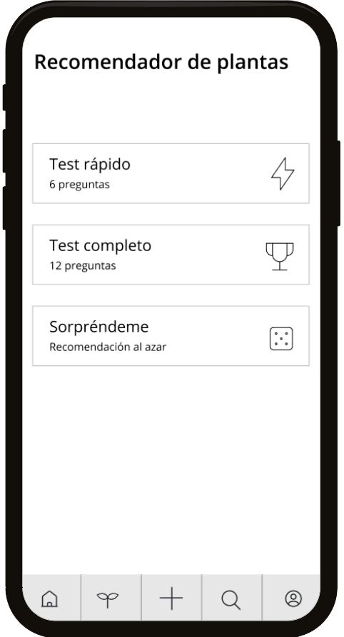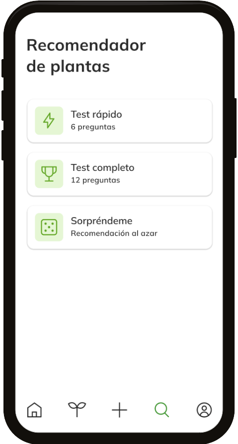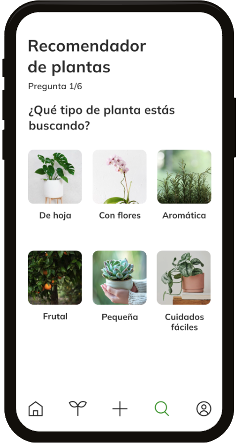 This functionality provides the user with recommendations of suitable plants based on their answers to a few short questions.