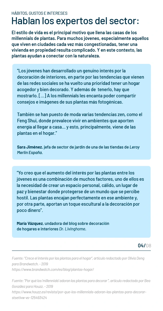 With the information and data about the habits, demographics and consumption patterns of plant enthusiasts, I conducted an analysis to get a clearer idea of the profile of potential users. In total I defined 4 User Personas.